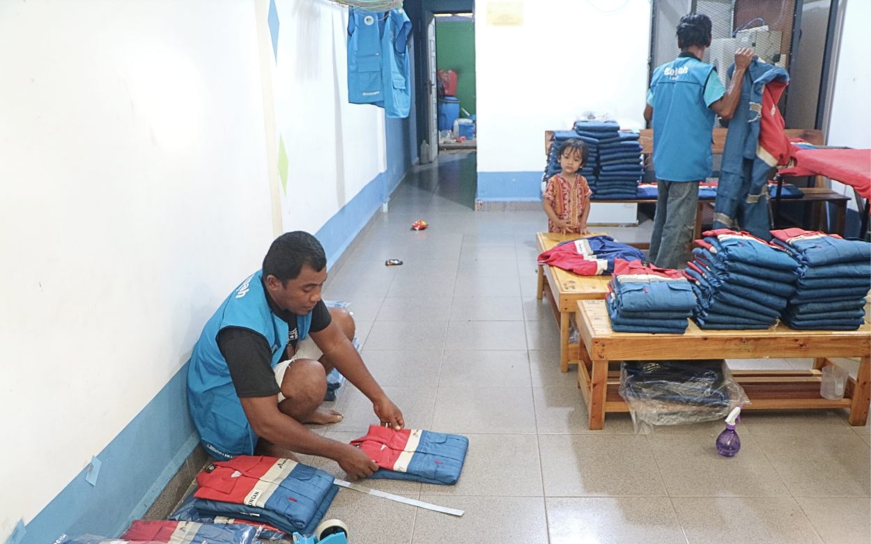 Karena jumlahnya ada 10 orang, mereka dibagi dalam lima shift, sehari bertugas dua orang. Satu orang bertugas sebagai juru cuci, satu lagi sebagai juru setrika. Artinya, setiap satu orang hanya bekerja empat sampai lima hari dalam sebulan.